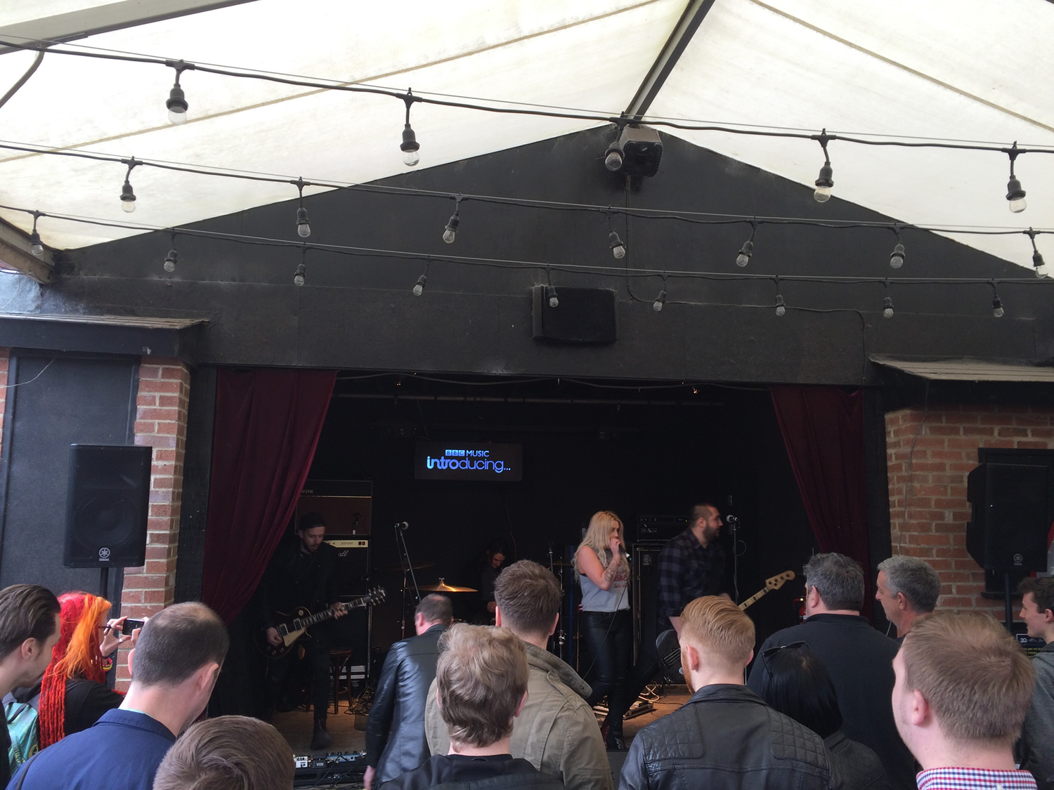 In the courtyard at the back of Bar One, Dean Jackson from BBC Radio Nottingham, and a champion of local talent, is compering a BBC Introducing stage which will be headlined by Radio One darlings Eliza and the Bear, a massive coup for Dean and the festival.