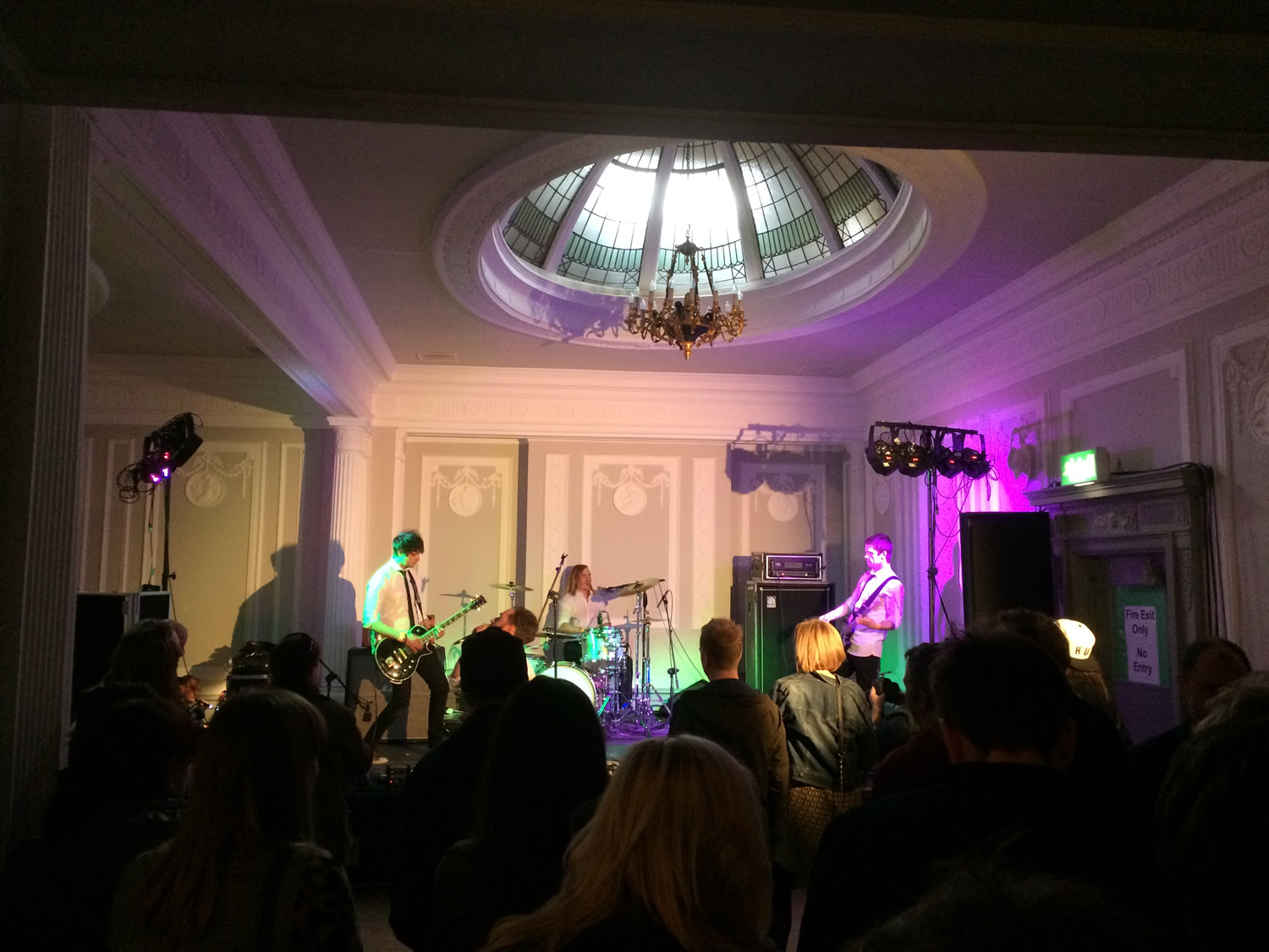 The Old Bell pub has undergone a major overhaul, and has been transformed from a sticky-carpeted dingy den selling cheap beer to a bright and airy pleasant retreat for casual afternoon drinkers of fine beers and wine. It’s an ideal setting for, say, an afternoon tea, but Replica Jesus, although dressed for the occasion – the four of them resplendent in white shirts and black ties – are not here for anything as quaint. Their primary motive is to shred the ears of everyone in attendance. Their lead man, Mat Davies, enters the crowd on numerous occasions throughout their cacophonous set, terrifying the front few rows, screaming into smart phones as they video him. Their brash hardcore stoner punk seems incongruous in such plush surroundings, but you play where you’re placed, and they were excellent. This is a band with a sharp look to match their viciously sharp sound.