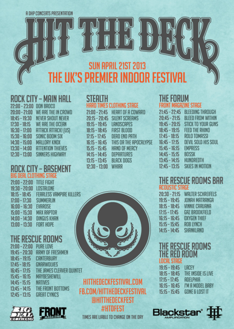 Once again a small area of Nottingham became a microcosm of all things rock by virtue of the Hit The Deck festival. Ok, so it may not be the rock you know. It contains none of the showboating rock titans of Download, the area’s daddy of rock festivals. It’s more like Download’s scruffy, unruly teenage offspring, or Dot to Dot’s scuzzy, moody big brother. Basically, it’s like a copy of Kerrang! that’s exploded into life onto Nottingham’s streets.