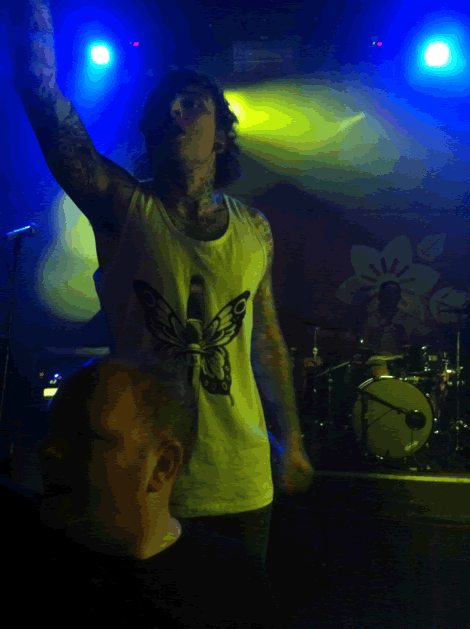 At 9 o’clock at the Rescue Rooms is another one of the day’s most highly-anticipated sets. Former Gallows flame-haired nutjob Frank Carter has a new band. They’re called Pure Love, and they’ve divided critics and been chastised by Gallows devotees for “selling out”. Nonetheless, The Rescue Rooms is full to bursting with people eager to witness his new incarnation. Carter spits and snarls his way through melodic rock – this genre shift being the main problem for many Gallows fans bred on a diet of insane hardcore. He enters the crowd, firstly to get a drink from the bar (Jack Daniels and Coke, ordered by your very reviewer after the bar staff stalled and looked more than a little bemused, bless ’em) and then assembles the drum kit in the centre of the audience. Naturally, a circle bit erupts around it, much to Carter’s encouragement and subsequent delight.