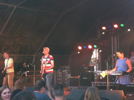 The highlight of the day, however, are The Wave Pictures. Despite the onset of a slight shower, they maintain their outdoor audience by virtue of some finely-crafted and lyrically-deft leftfield indie. Think Hefner and you’re almost there.