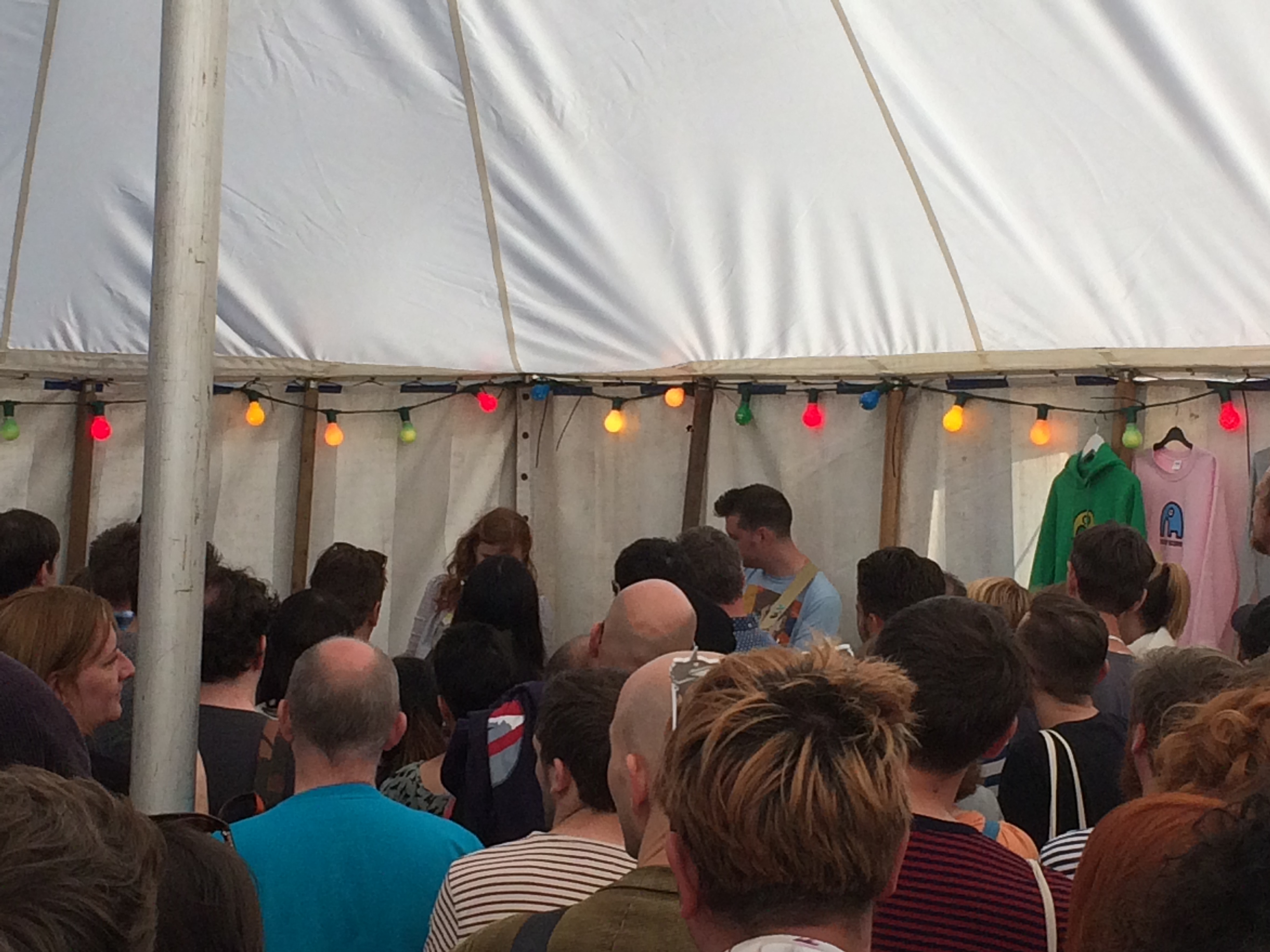 This, they say, is their last ever show, and they can’t be bothered to transport their merchandise back home so they give it away after their set on one condition: anyone who picks up an album must donate to Sarcoma UK – a cancer charity close to the festival’s heart as Camera Obscura’s Carey Lander died from bone cancer just last year. And it wasn’t just spare change people were chucking into the collection bucket. Notes of all sizes were generously tossed into the bucket in her memory. Good call Bearsuit, good call.