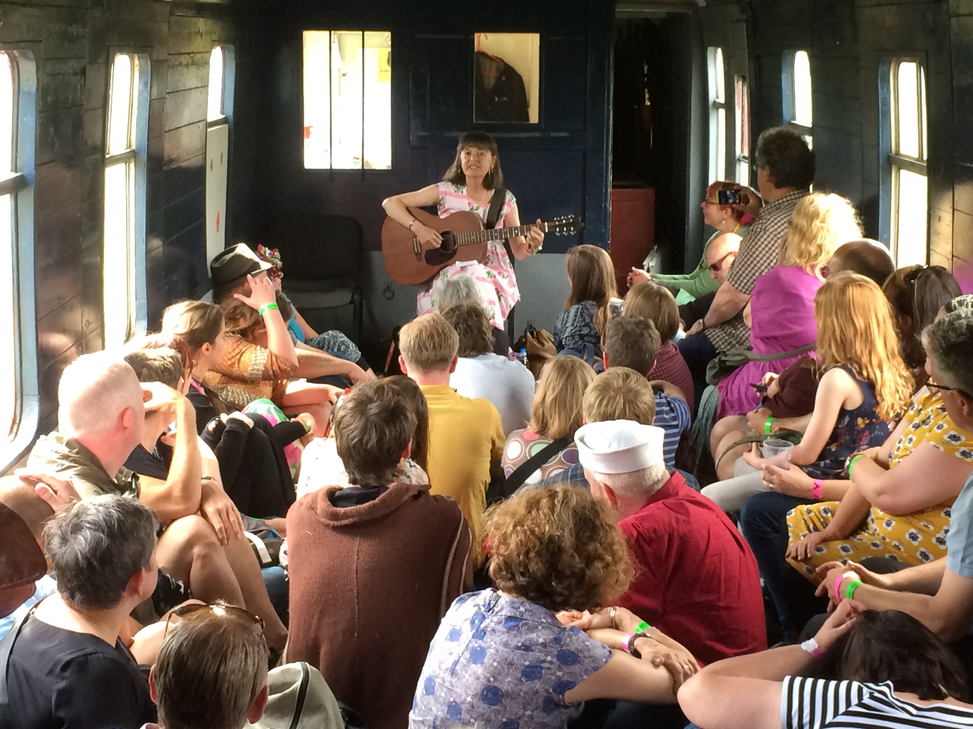 Music is to be found on the train, too, as it meanders through the Derbyshire countryside. Former punk Helen McCookeryBook (great name) has a more relaxed sound to her these days, and although her folk tales are charming, the clickety-clack of the train drowns out her soft voice a little.