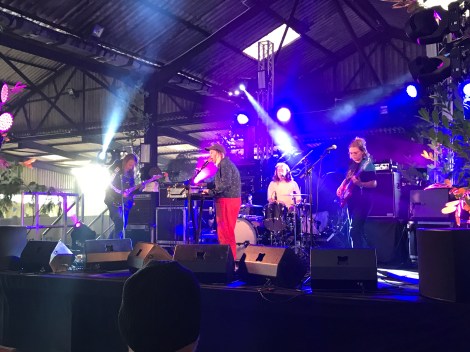 At this point, many punters are beginning to think about their stomachs (there are a few food vans scattered around a courtyard outside the barn, offering veggie, vegan and meat. There’s also a chill out hut and table tennis. Of course). But those who choose food over Mr Ben and The Bens missed a treat. Fresh-faced rock ‘n’ roller Ben weaves some guitar magic to provide a bit of old-skool rock n roll on an early Saturday evening. Marc Riley is a big fan of their clean-cut, playful ditties. It’s easy to see why.